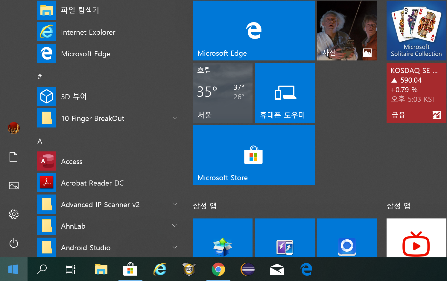 1. 윈도우 버튼을 누르면 나타나는 Life at a glance라는 화면에 보면 "Microsoft Solitaire Collection"이 보인다.