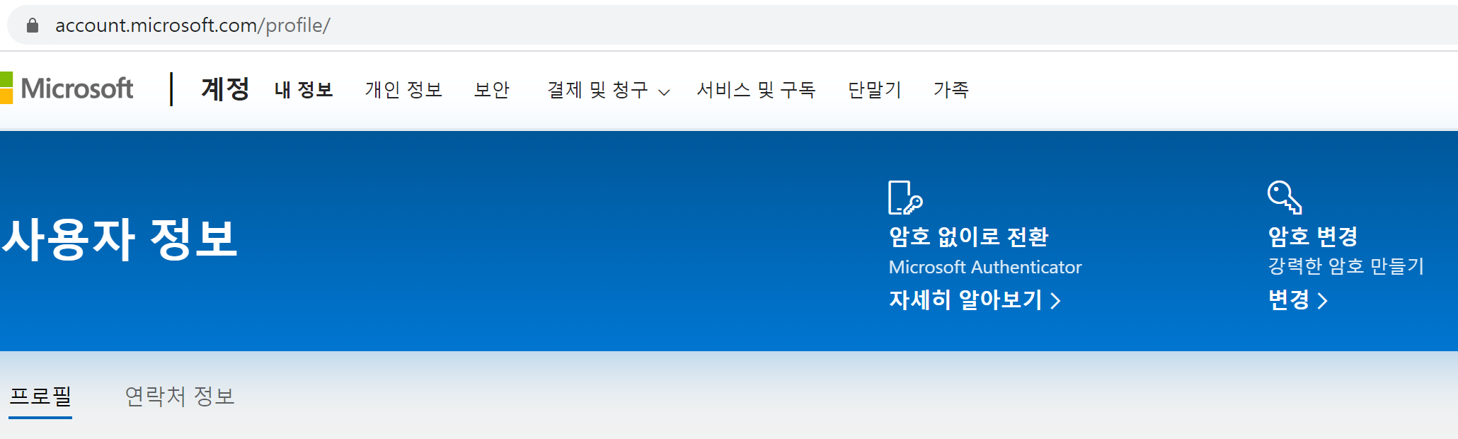 마이크로소프트 계정의 비밀번호를 변경하고 싶다면, 다음과 같이 진행하면 된다.