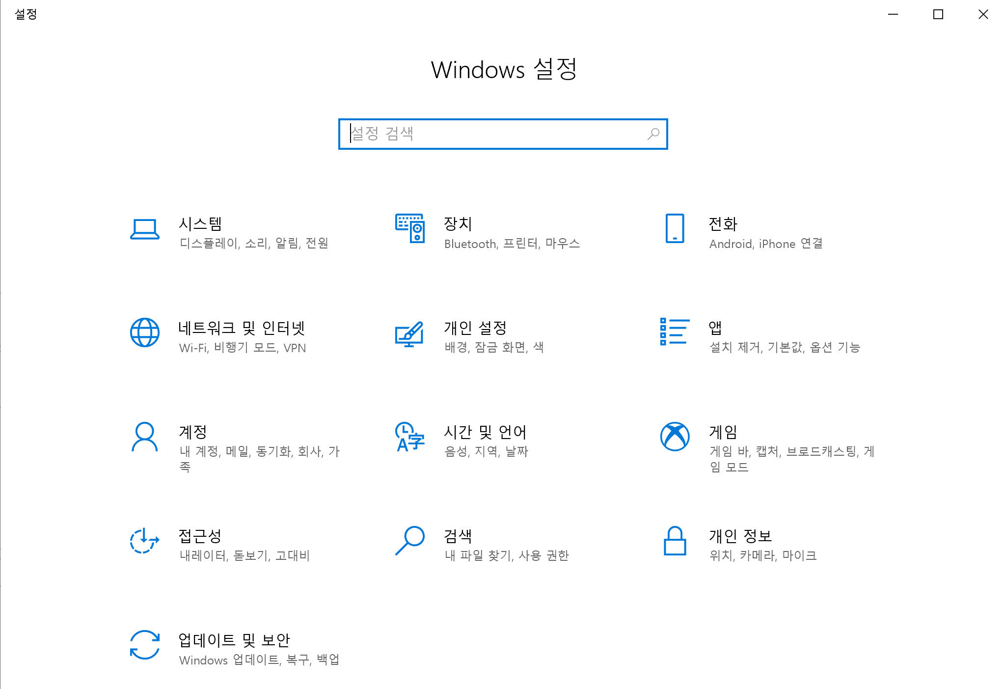 1. 윈도우 설정 화면을 연다.