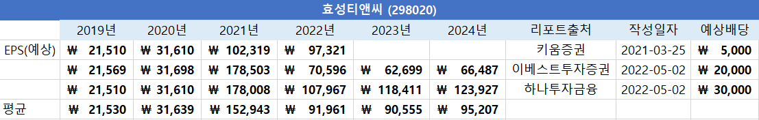 | 효성화학 (298000) EPS / 배당 예상 (0) | 2020.11.03 |