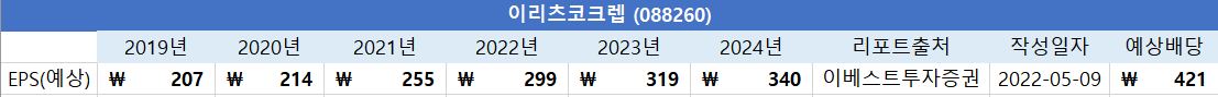 | 롯데리츠 (330590) EPS / 배당 예상 (0) | 2021.11.13 |