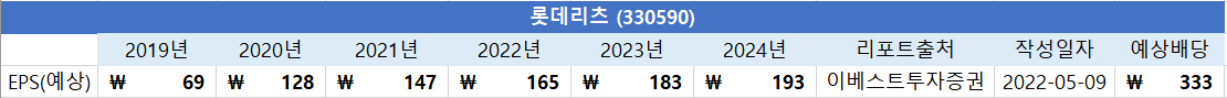 | 이리츠코크렙 (088260) EPS / 배당 예상 (0) | 2021.11.13 |