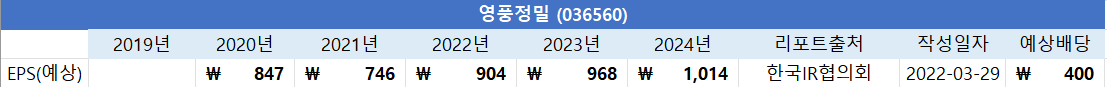 | 에치에프알 (230240) EPS / 배당 예상 (0) | 2022.04.03 |