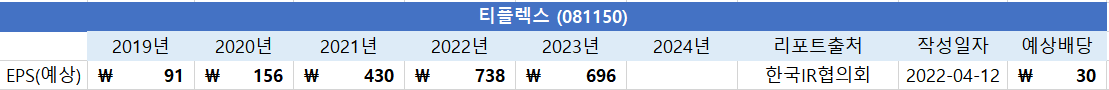 티움바이오 (321550) EPS / 배당 예상 (0) | 2022.04.23 |