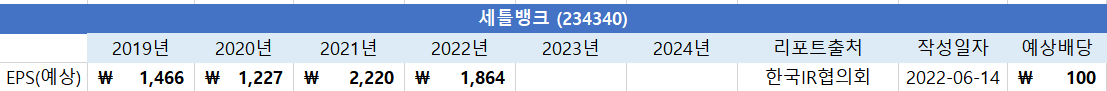| 쎄트렉아이 (099320) EPS / 배당 예상 (0) | 2022.06.18 |
