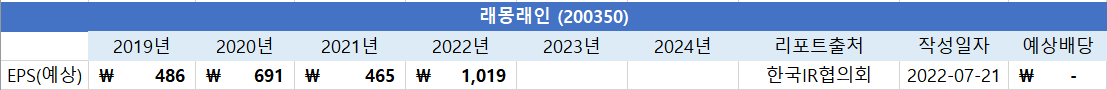 | 씨앤씨인터내셔널 (352480) EPS / 배당 예상 (0) | 2022.07.24 |
