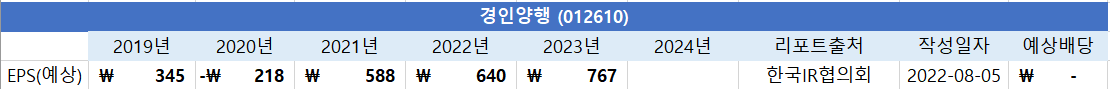 | 오로라 (039830) EPS / 배당 예상 (0) | 2022.09.25 |