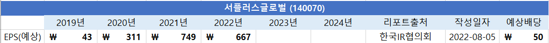 | 오로라 (039830) EPS / 배당 예상 (0) | 2022.09.25 |